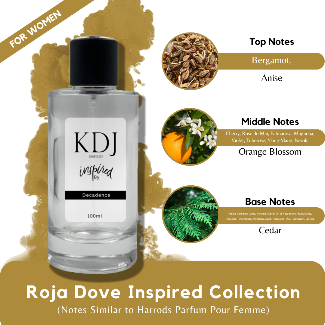 | Middle Notes | Cherry, Rose de Mai, Palmarosa, Magnolia, Violet, Tuberose, Ylang-Ylang, Neroli, Orange Blossom |
